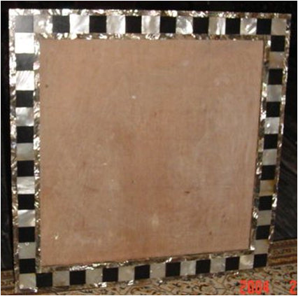 It is a mirror frame made in MDF with white mother of pearl and black stone.