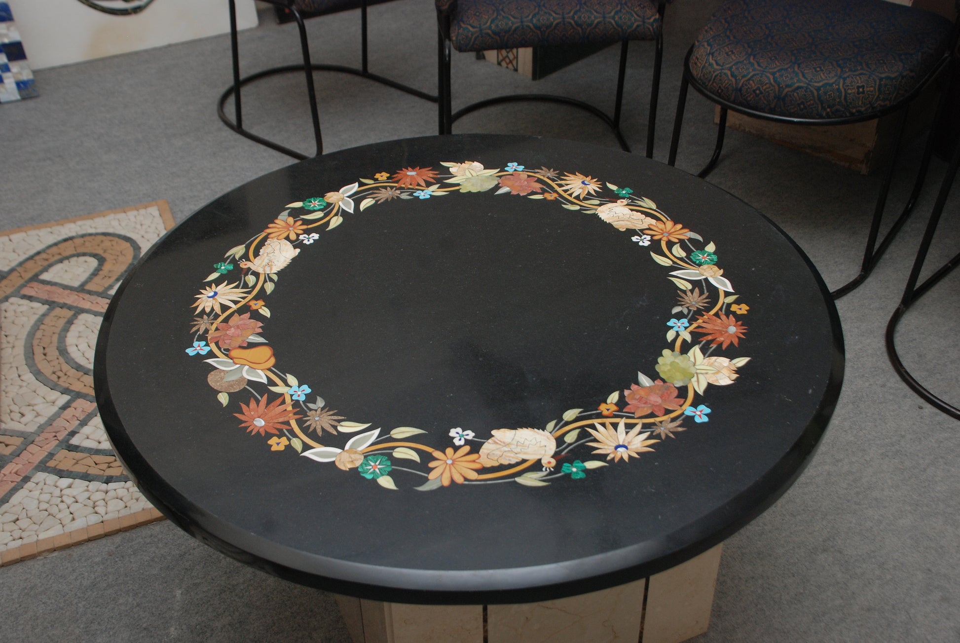 This is a Marble Inlaid Tabletop. The inlay is done using exotic marble and different Exotic colours of marble and Semi Precious stones.
