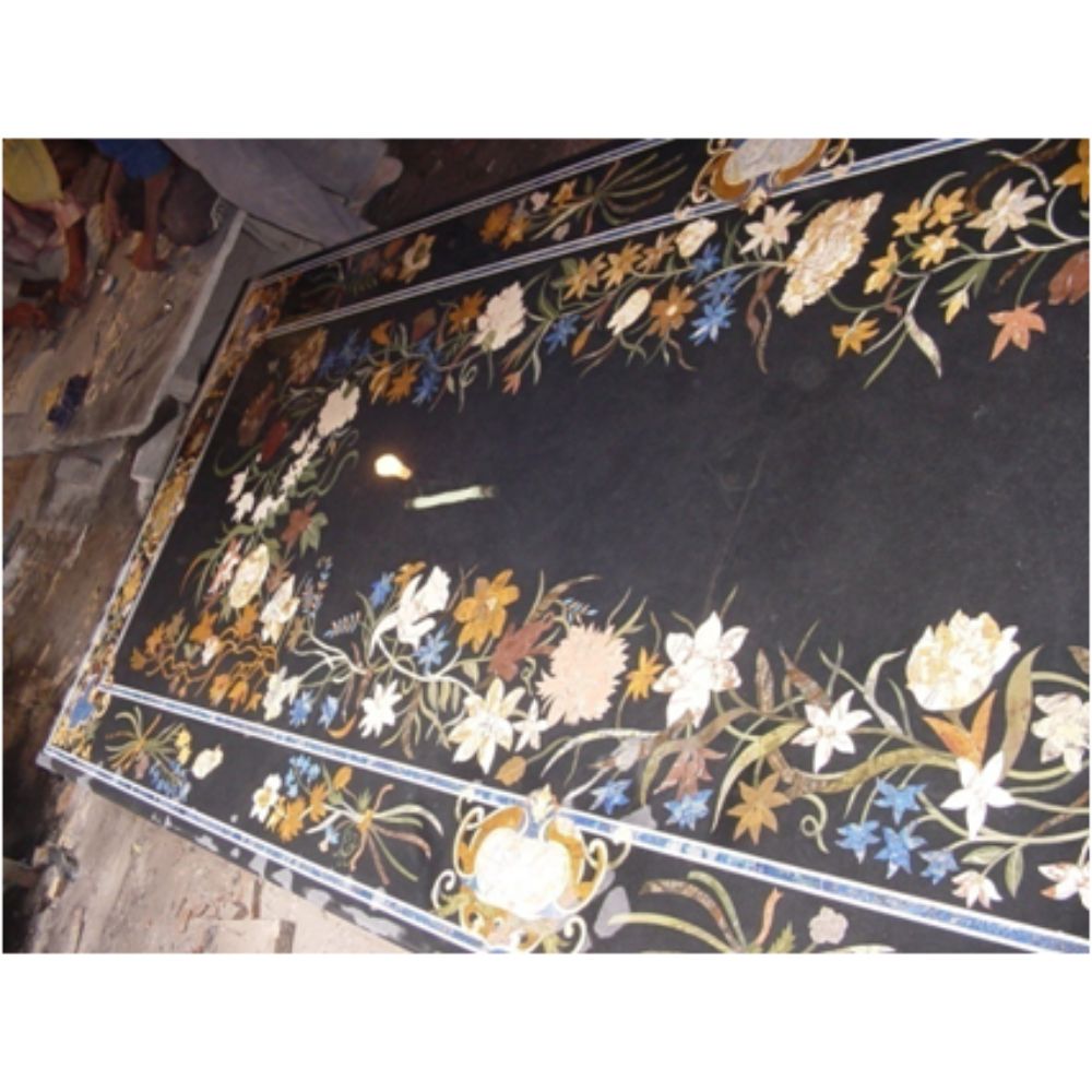 Stone Plus India Marble Inlay Intricate Black Tabletop