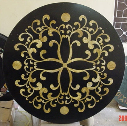- It is Black Marble Tabletop. Inlay is done by yellow marble.