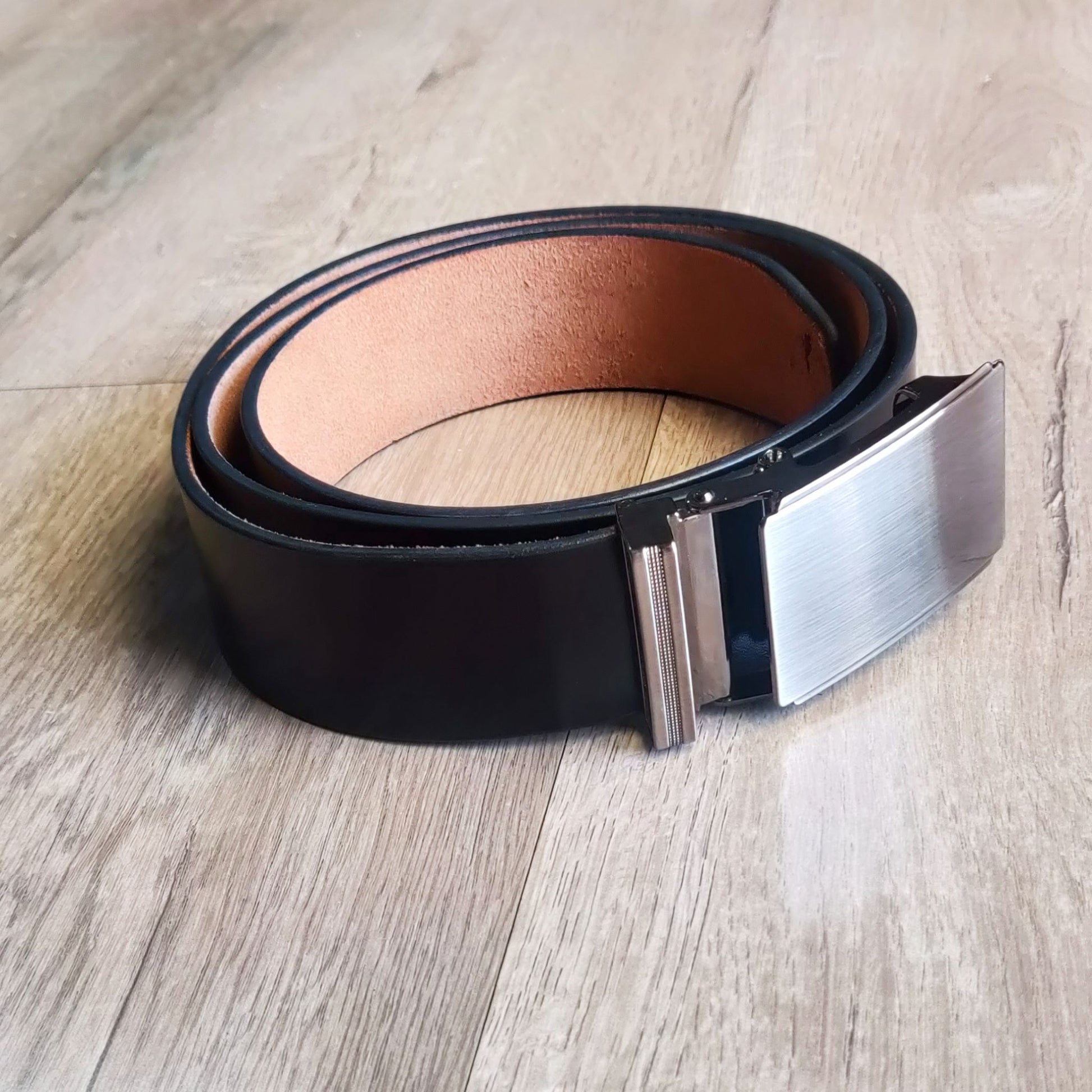 Choosing the right waist belt for your waist is not a simple matter! ALAGAN is here to simplify your options for choosing a perfect belt. This BLACK Nappa Leather Belt with plain smooth finish design.To ensure you don't buckle under pressure, this leather belt is super comfortable and easy to wear. It comes with a matt silver finish auto buckle and a perfect amount of thickness, Perfect for Casual and Formal wear both. The length of the belt can be shortened easily at home if required you just need to unlock the strap from below the buckle, cut the desired length and lock it back. The buckle is of the autolock type. Made in India Product Gift box - Make a big impression by gifting this fashionable men’s belt to your loved ones