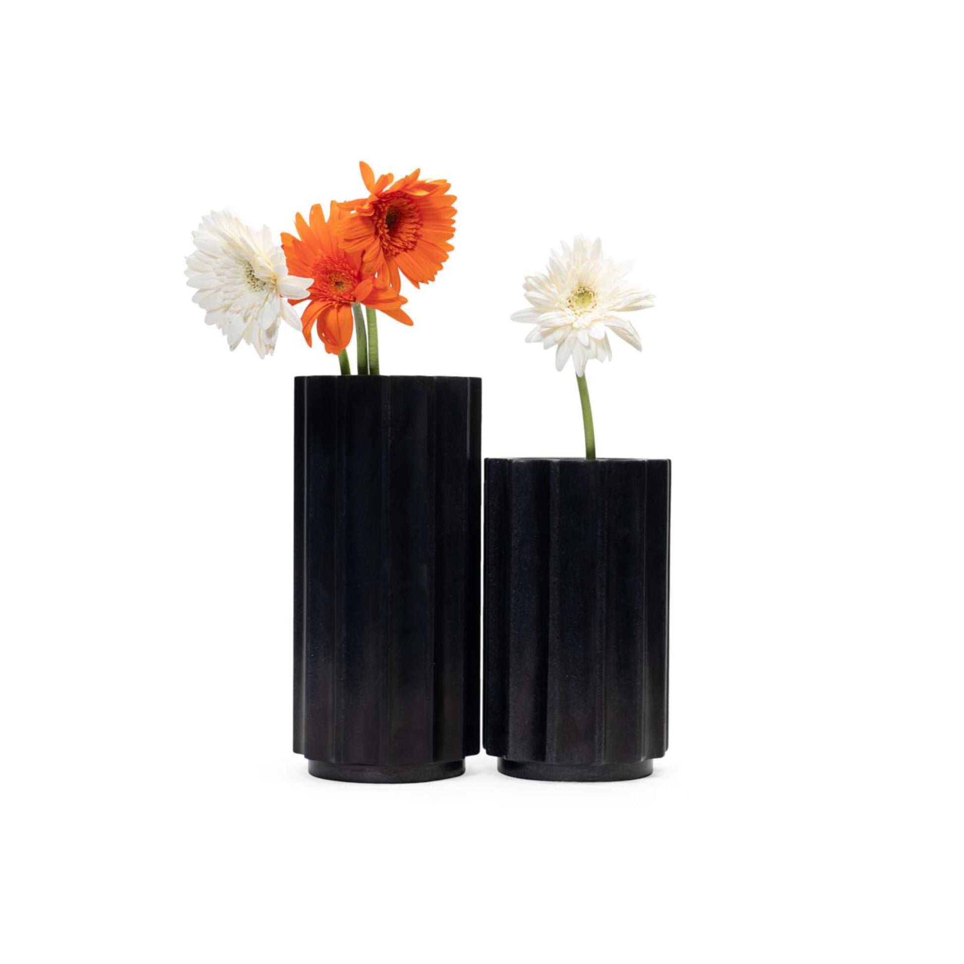 This is set of two flower vases. Made of black Marble Fluted . You Can buy even single piece of either piece.