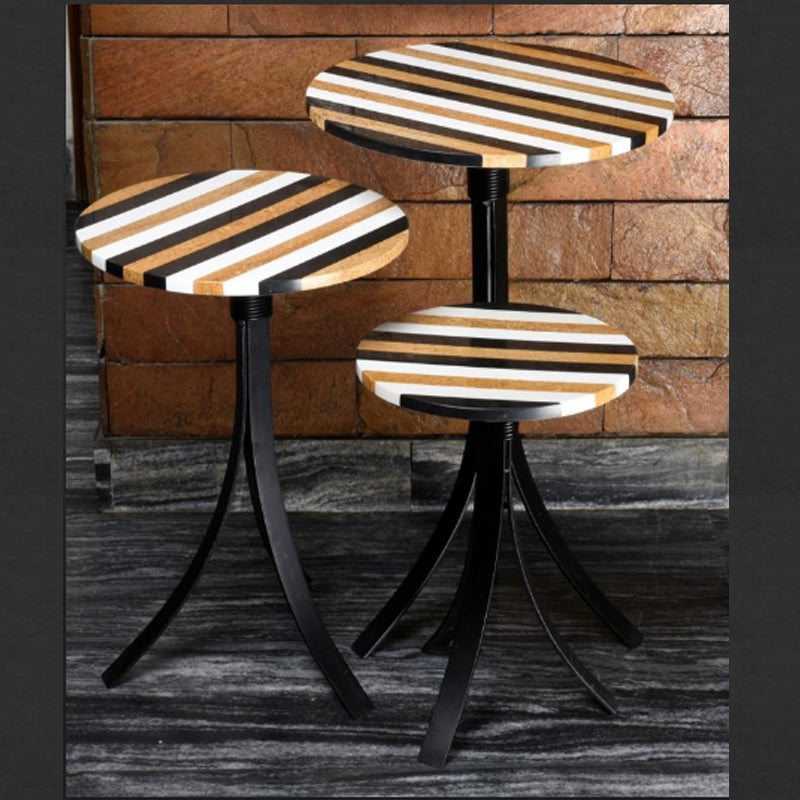 Stone Plus India Black, Yellow & White Marble Stripe Table Set of 3