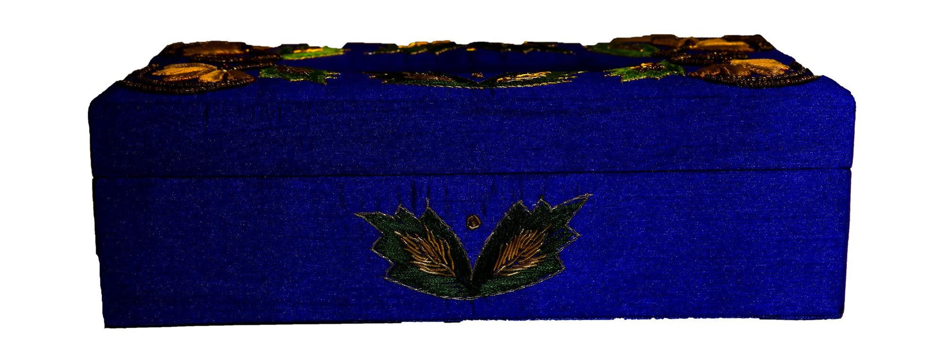 Made of MDF board with cloth pasted. The embroidery is done with zari and satin thread. The weight is 500 gms.