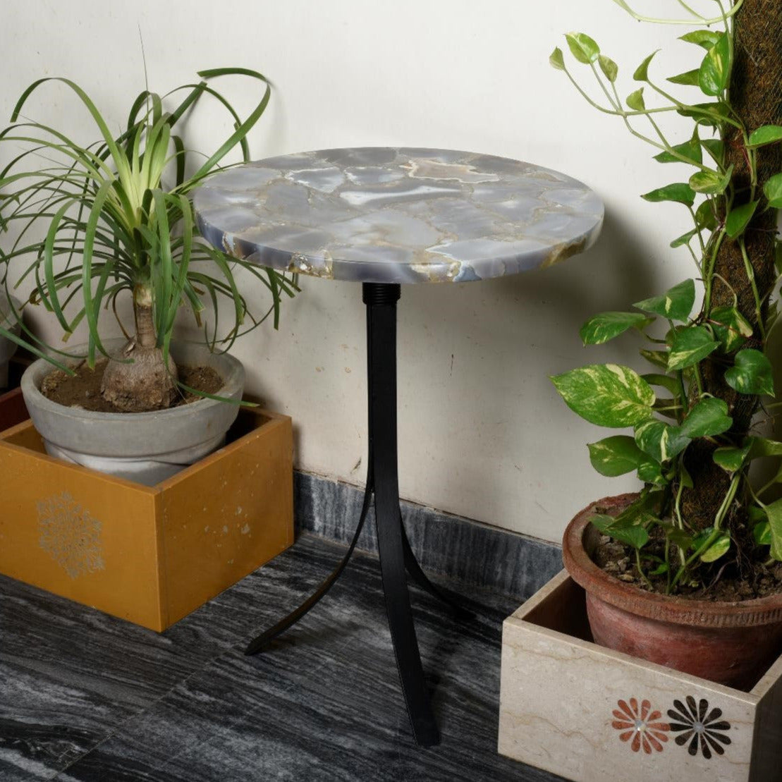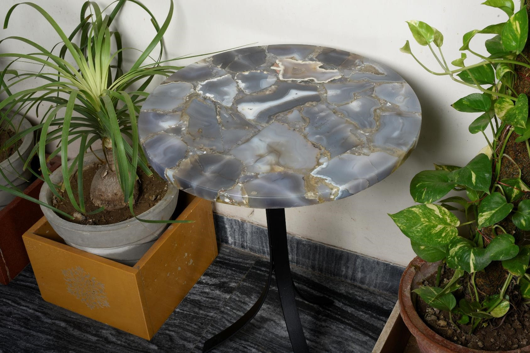 Stone Plus India Grey Agate Table with 3 legged Metal Base