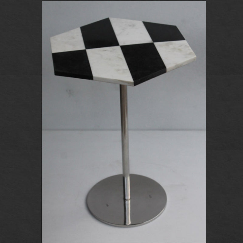 Stone Plus India Hexagon Black and White Marble Side Table SS