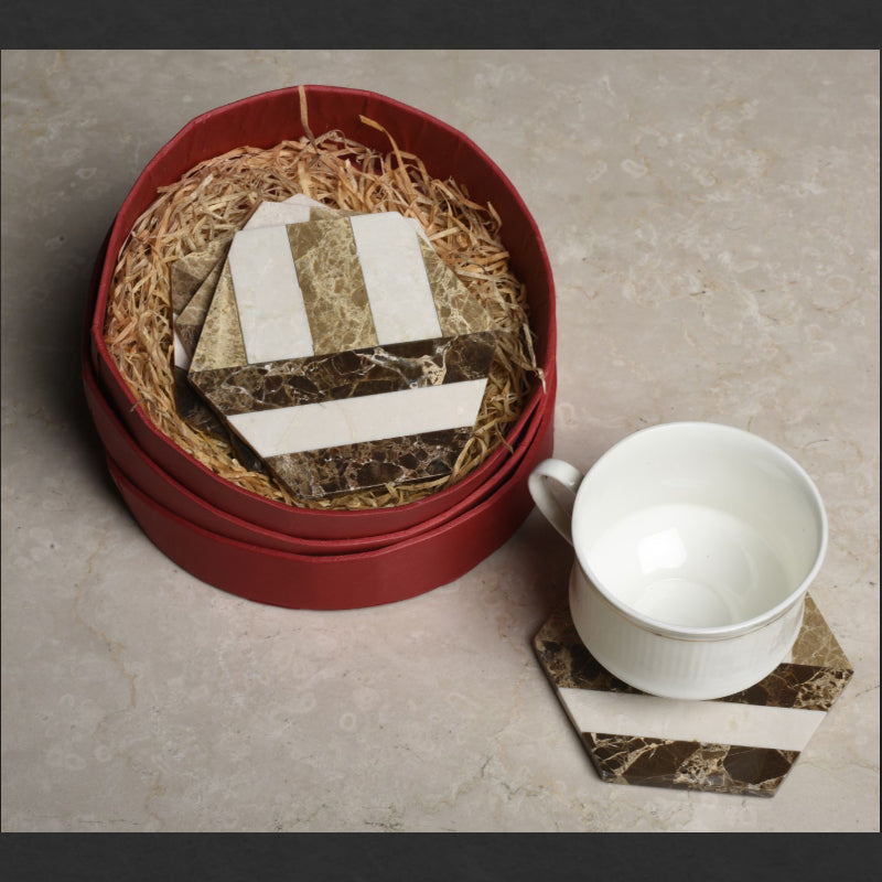 Opulent Homes Dark Brown Hexagon Coasters set of 4