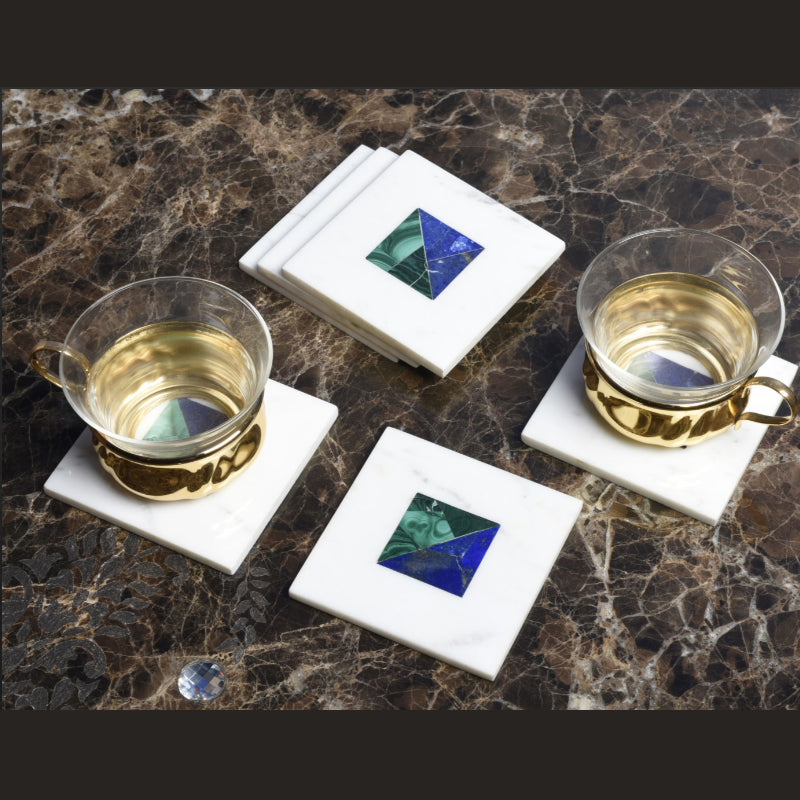 Opulent Homes White Marble Inlay with Malachite and Lapiz Coasters set of 4