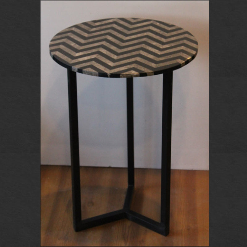 Stone Plus India Black and Mother of Pearl Inlay Marble Side Table