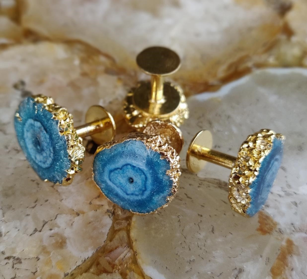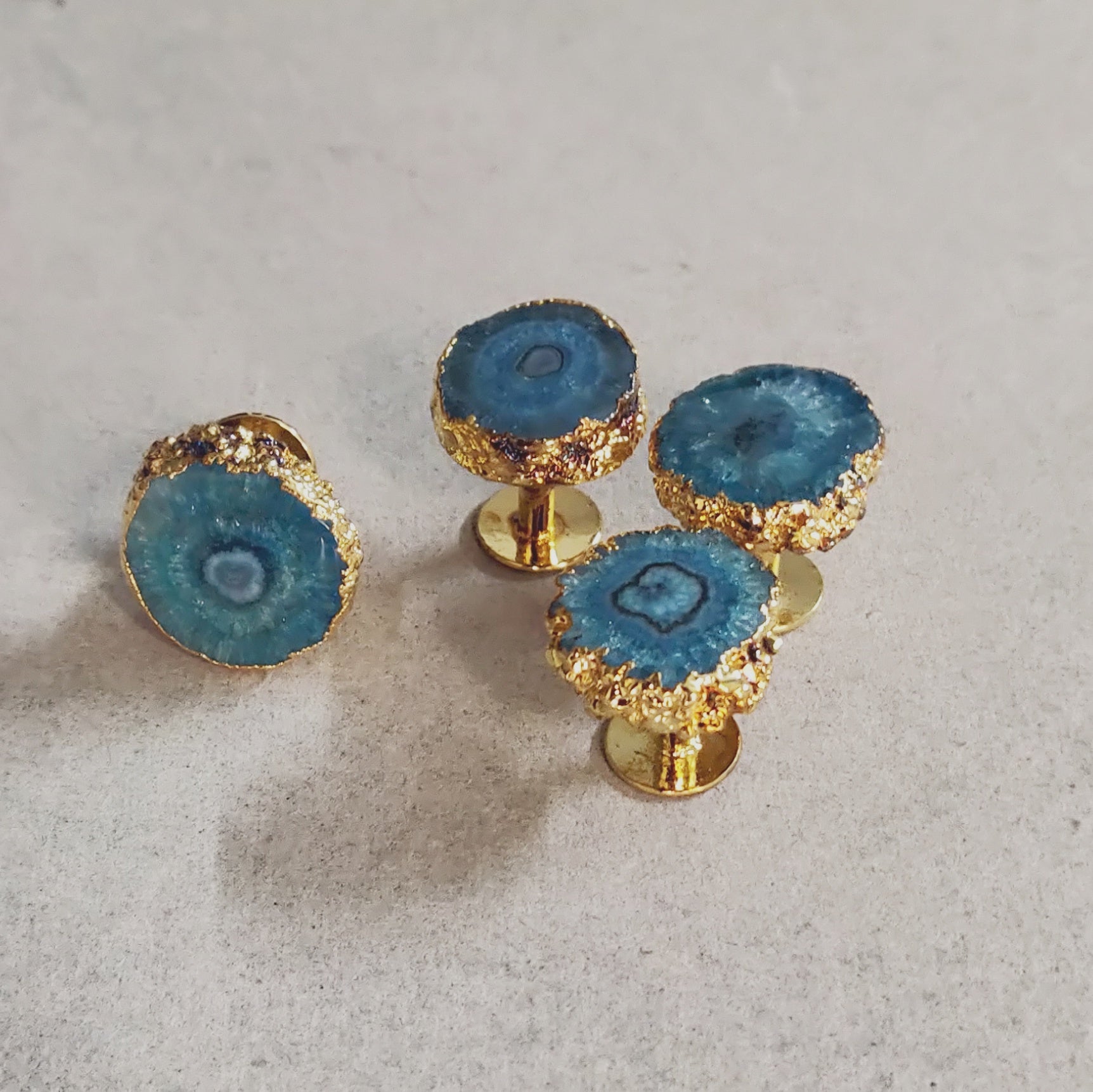 Opulent Homes Agate Kurta Buttons For Men set of 4 blue