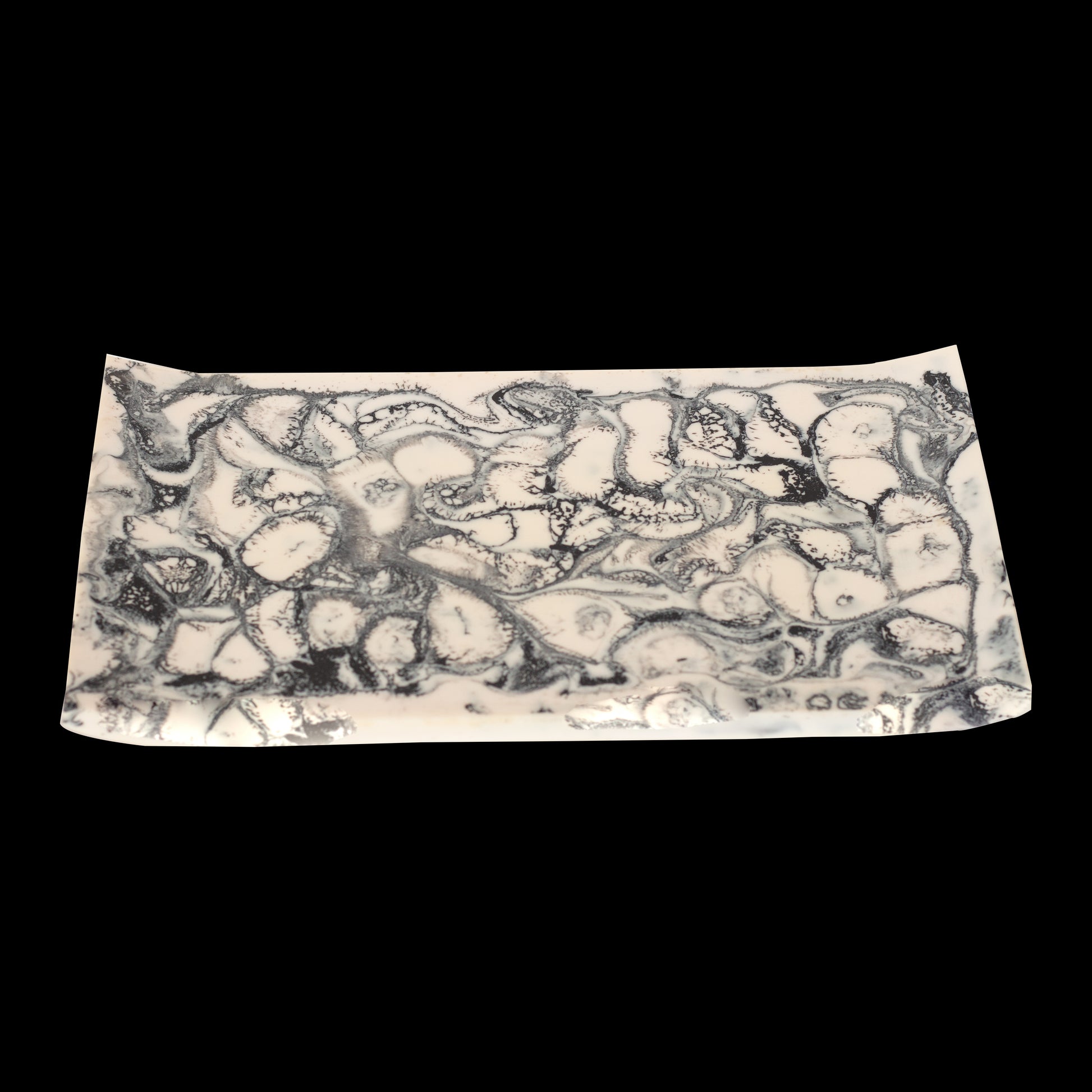 It is made of resin. The tray is multi utility, can be used as serving tray, platter, decorative , towel tray, mini bar tray etc.