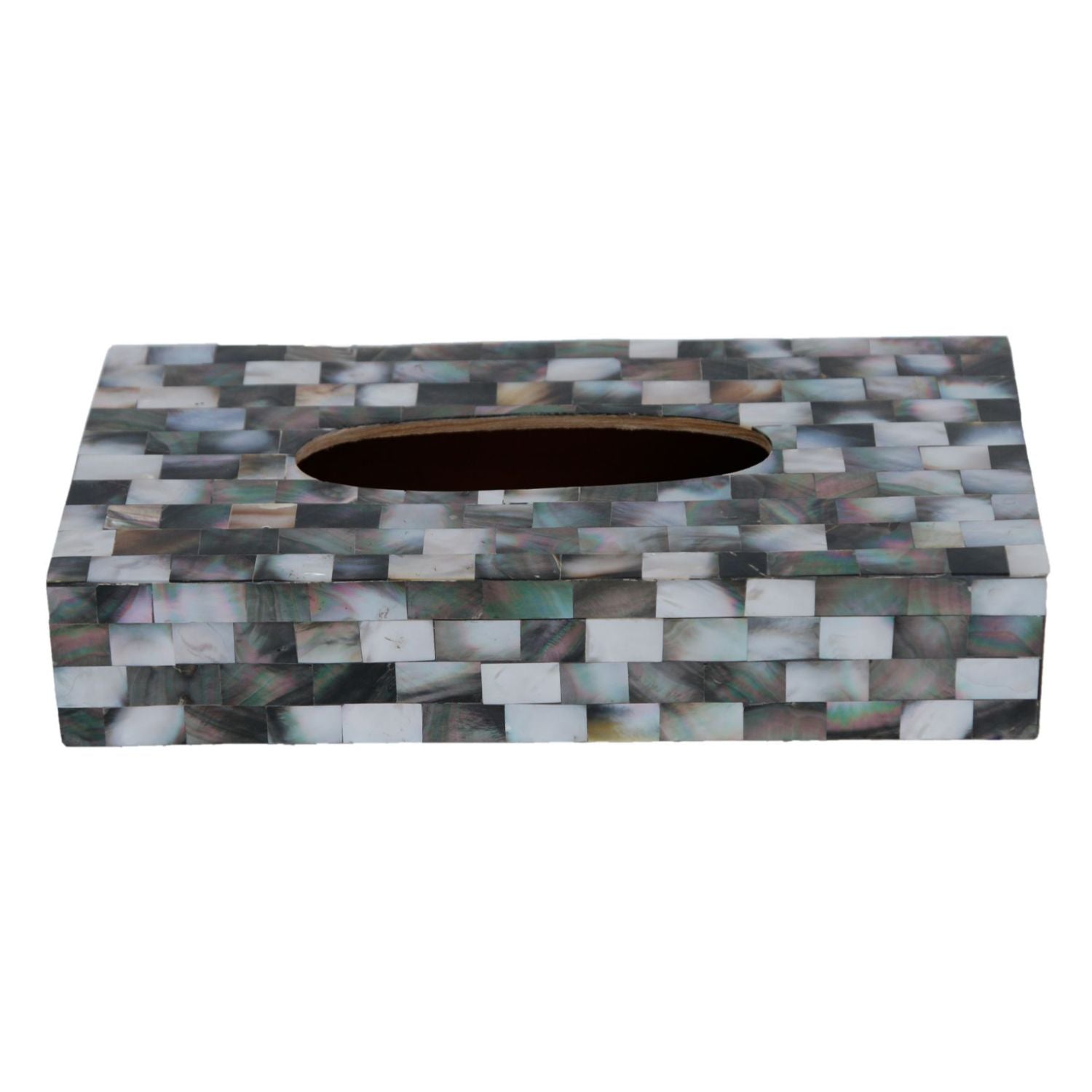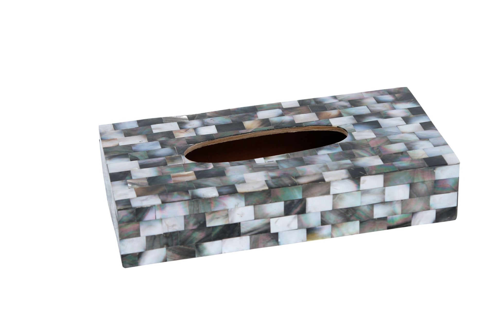 Opulent Homes Black Mother of Pearl Tissue Box 1052