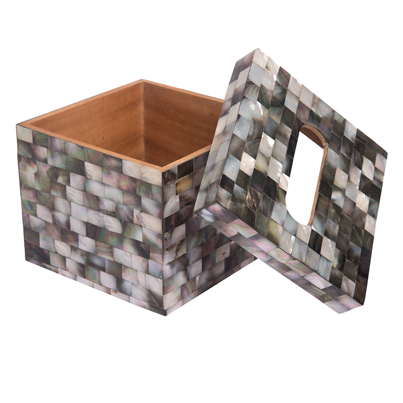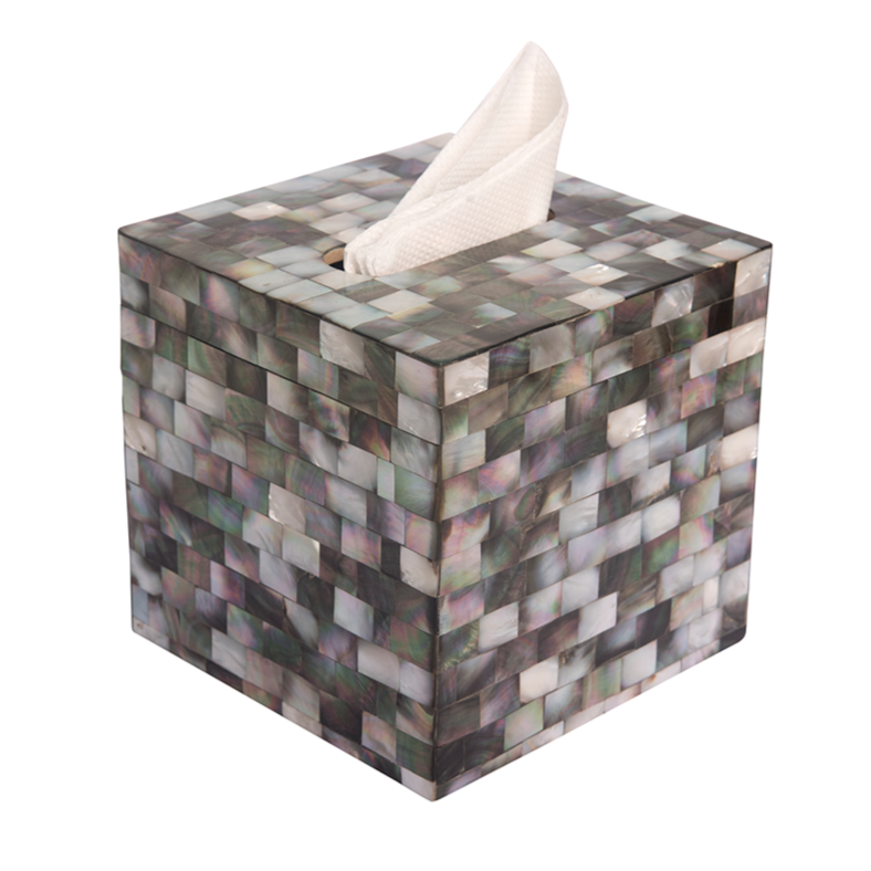 Opulent Homes Black Mother Of Pearl Tissue Box 666