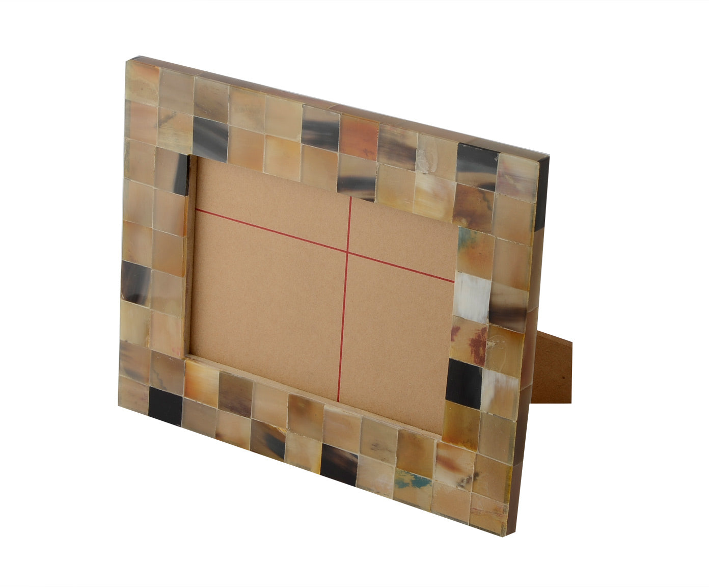 It is made of MDF with horn pasted on the border. The border is 1.5 inches, so the frame size is 10x8 inches, will have Photo size of 7x5 inches