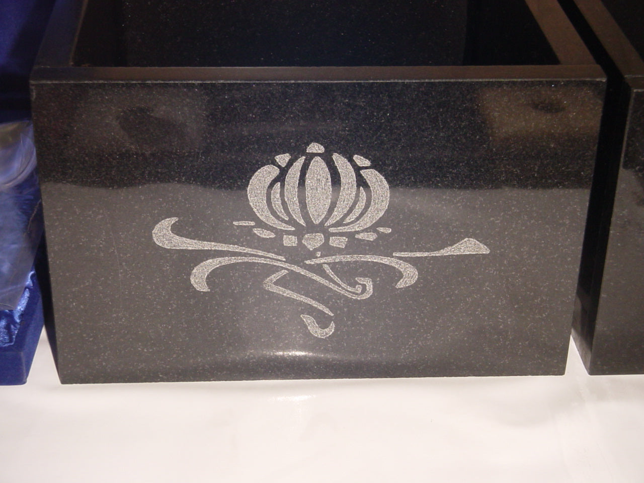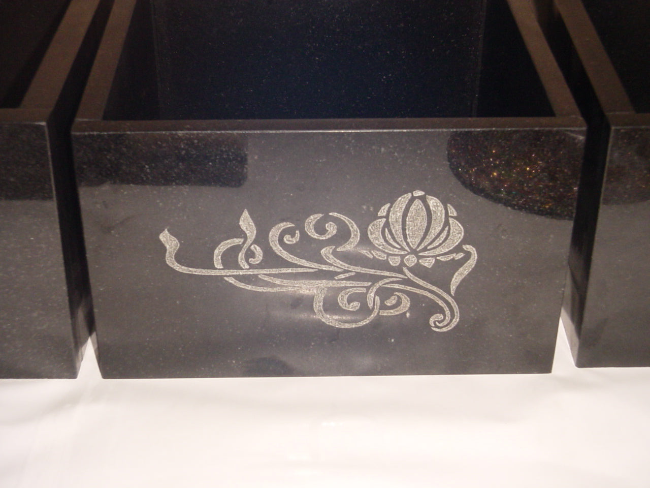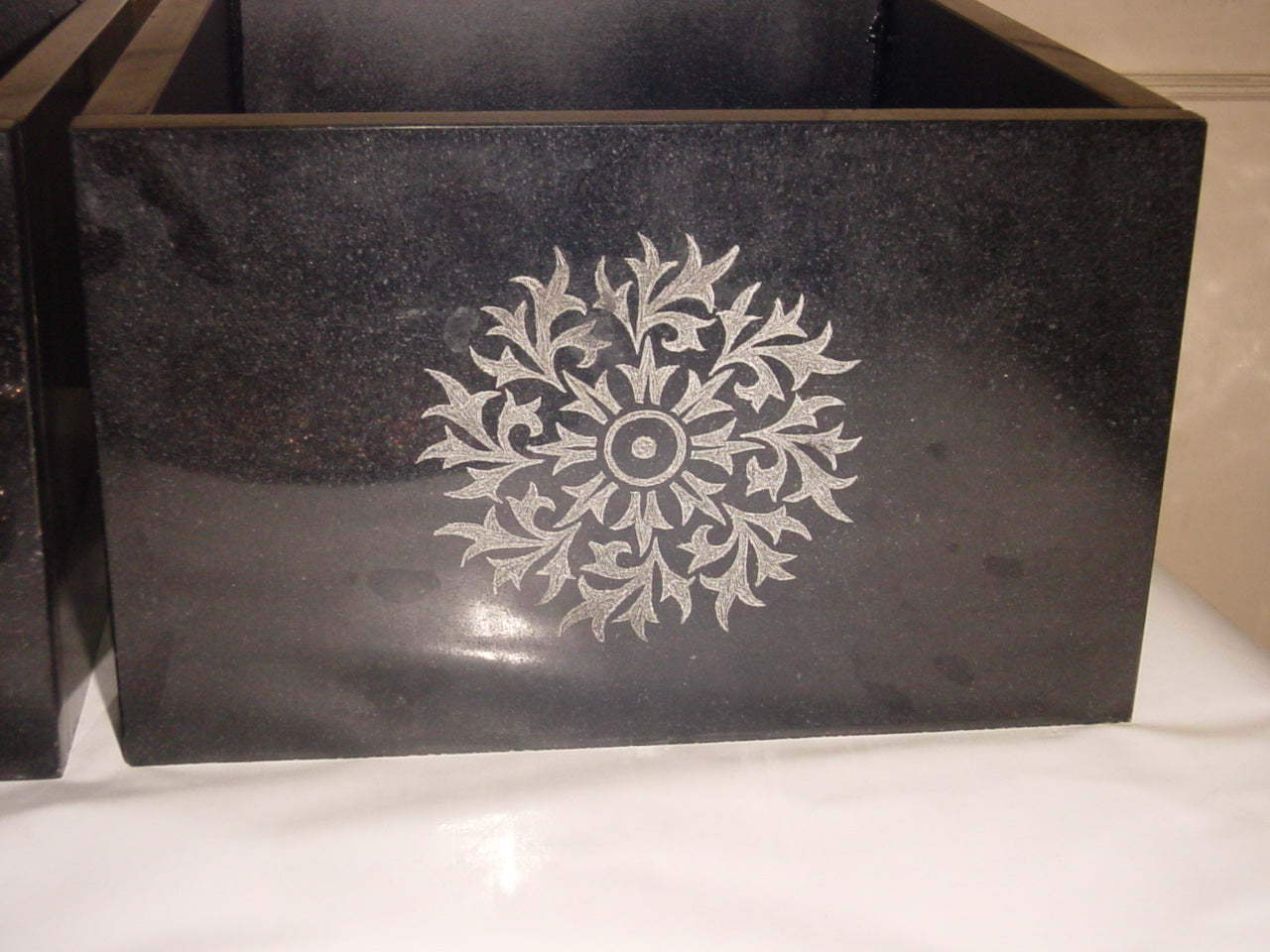 Planters are made in black marble, with hand etching designs. Can be customized.