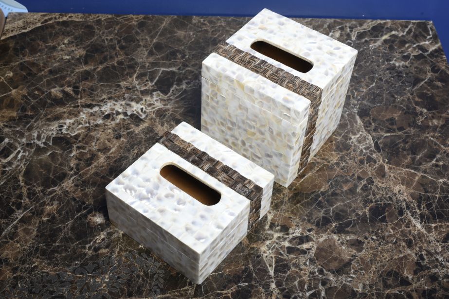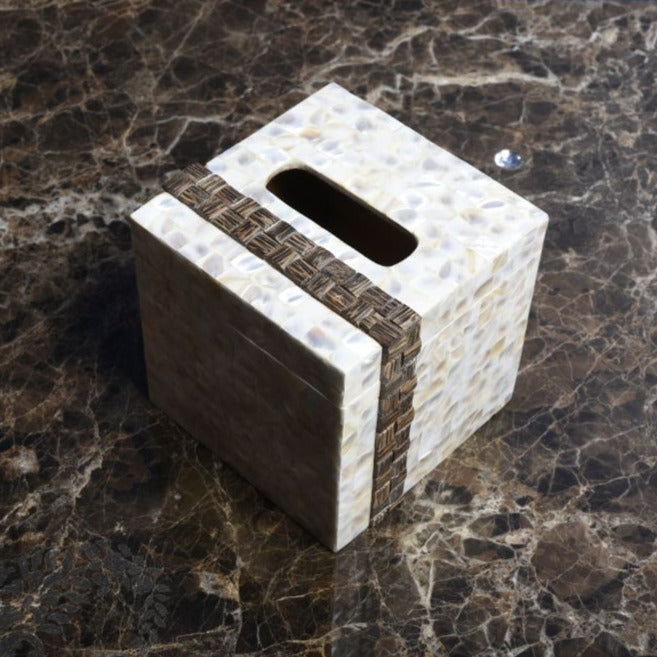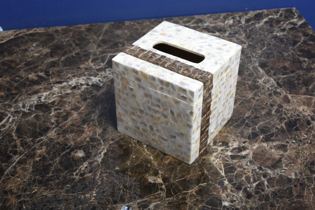 Opulent Homes White Mother of Pearl Taadiwood Tissue box 666
