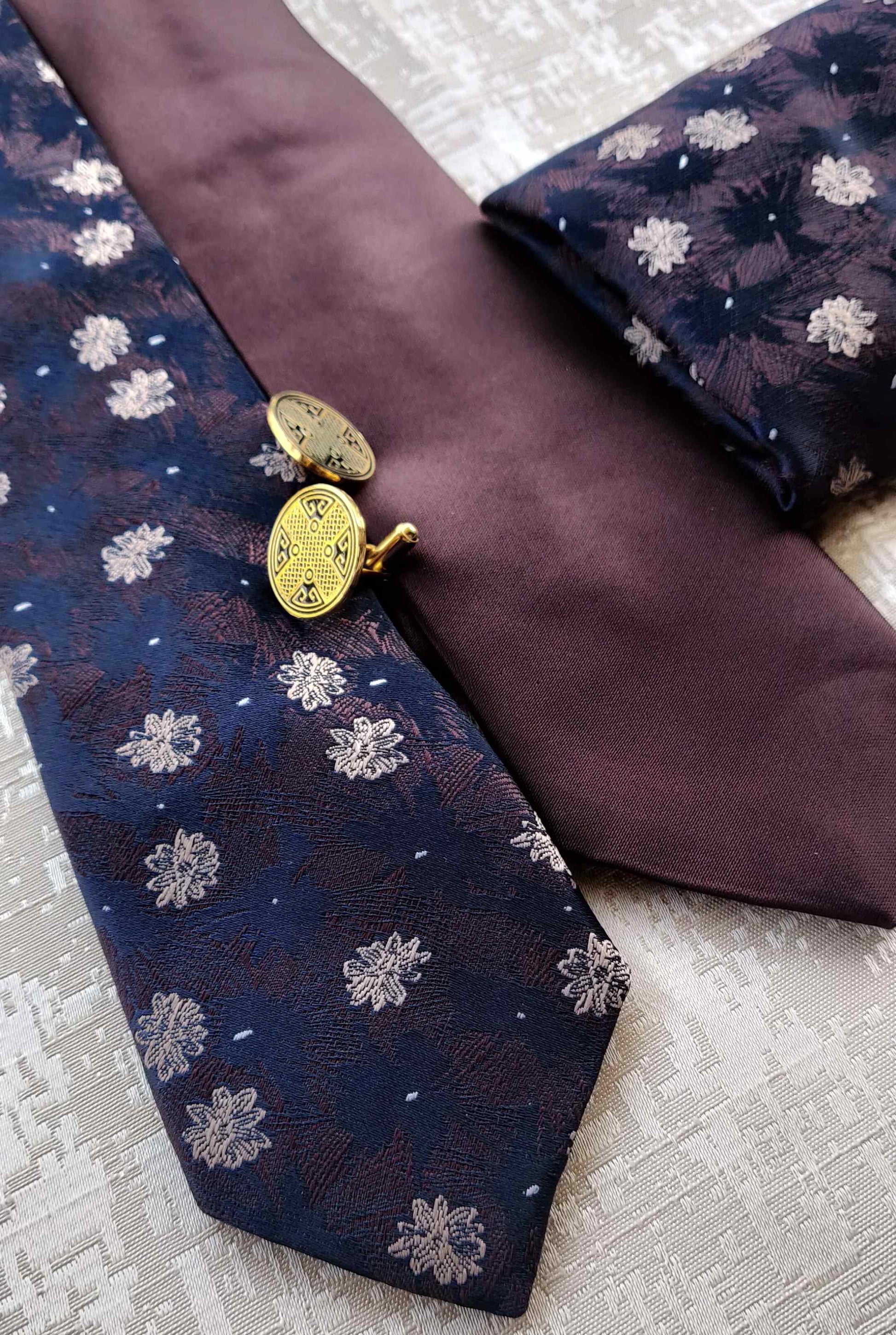Dimension : Cufflinks : 0.75 inch diameter, Ties : 59 x 2.5 inches, Pocket Square : 10x 10 inches