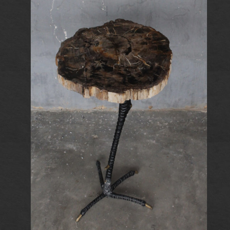 Petrified Wood Table With Metal Claw Base