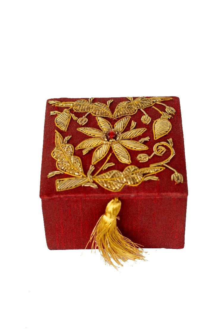 It is a multipurpose box. The base is of thick ply. The embroidery is done with zari and stones. A decorative box can be used to keep anything The weight is 150 gms. It can be customized.