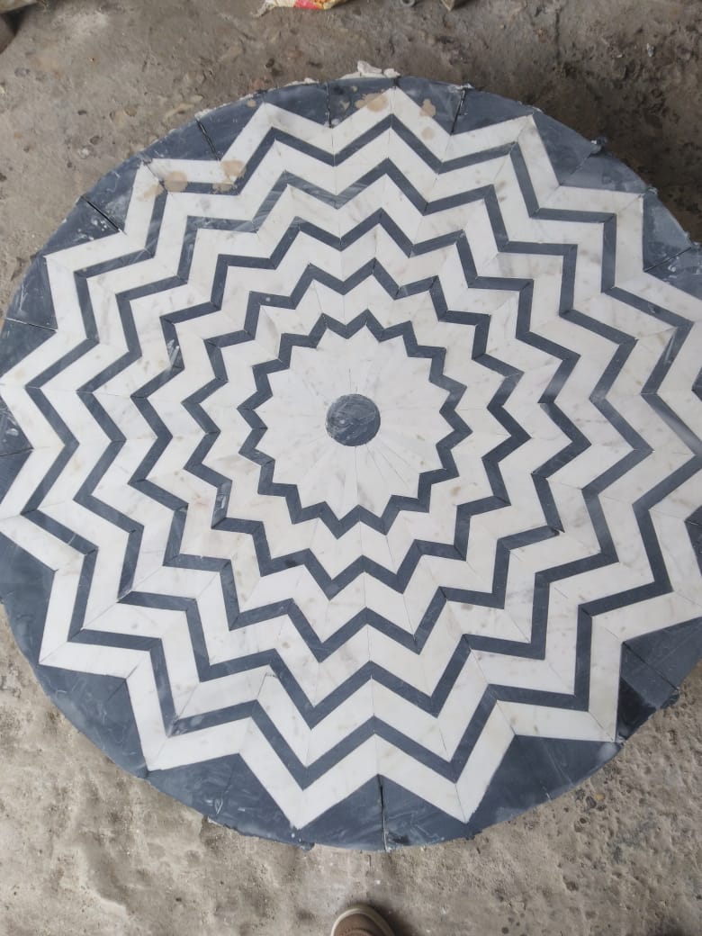 Stone Plus India Black and White Marble Floor Medallion Overlay
