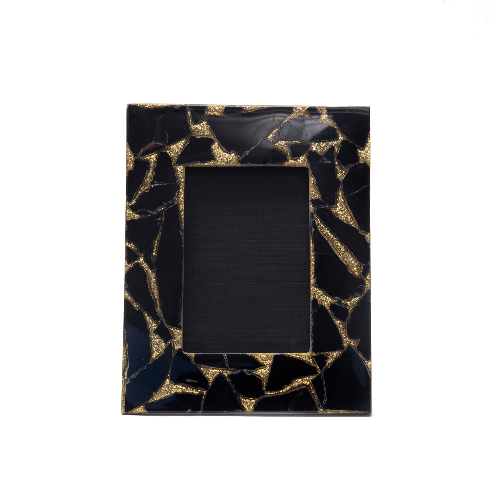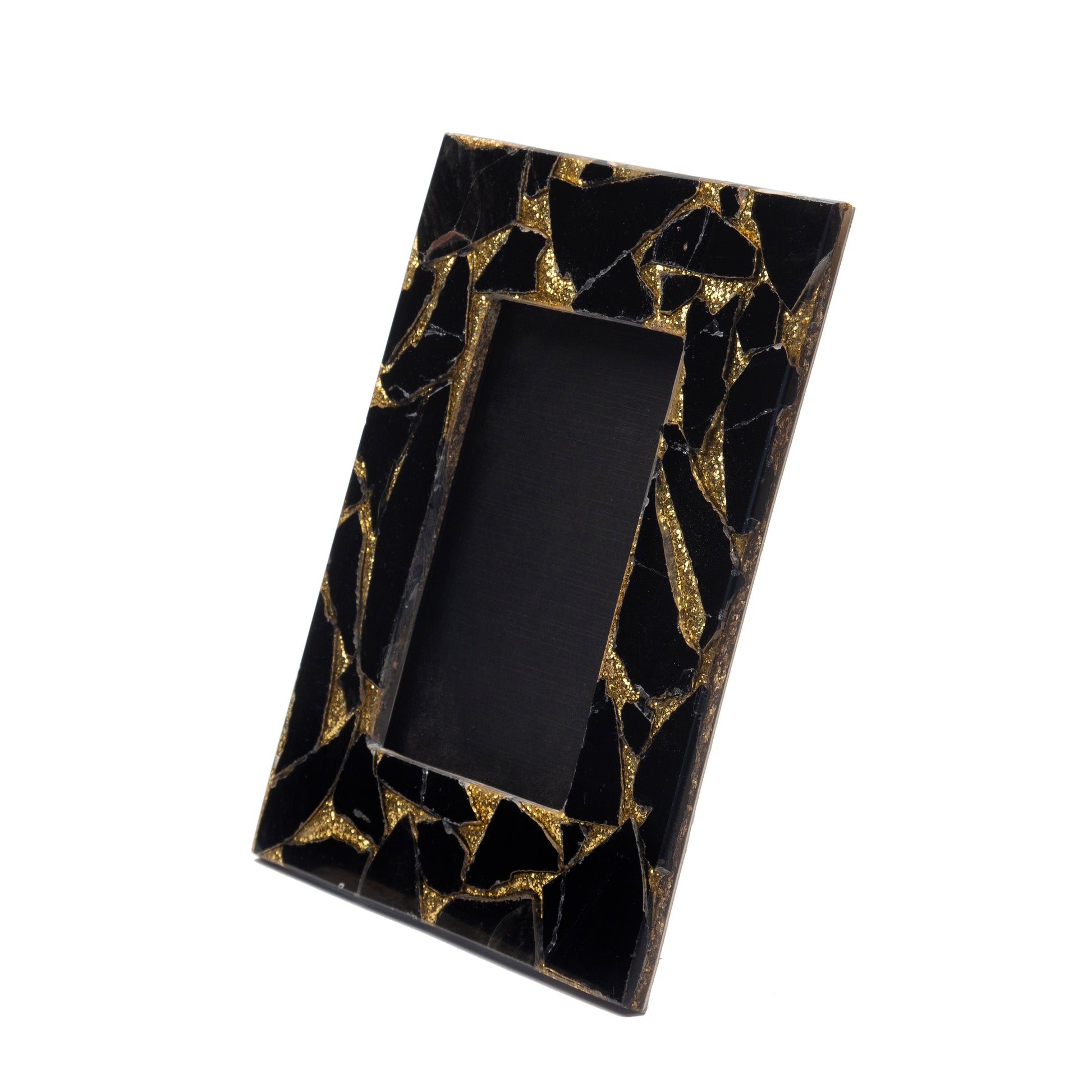Stone Plus India Black Obsidian With Gold Frame Photo Frame