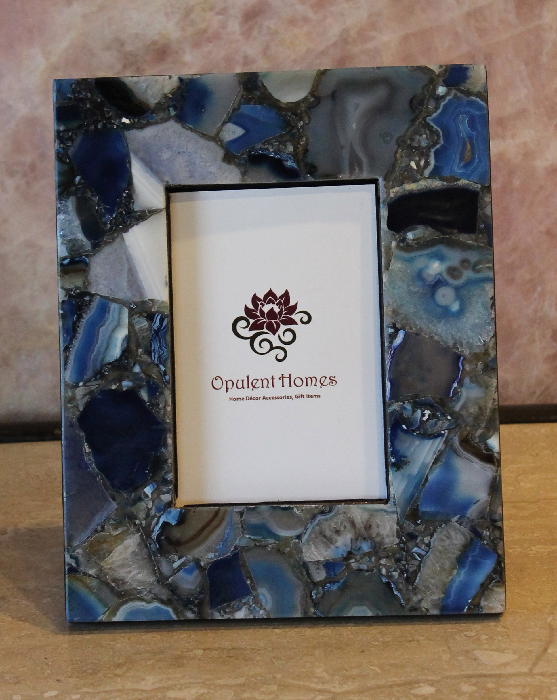 This photo frame made in blue agate. It is made to fit photo size 6x4 inches.