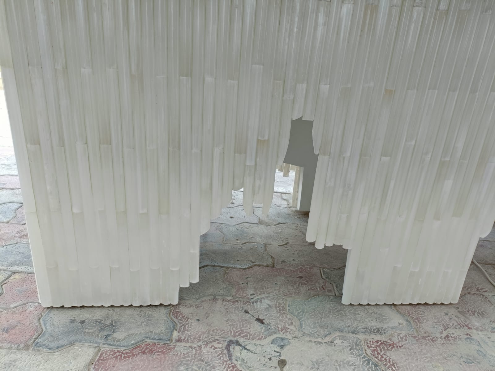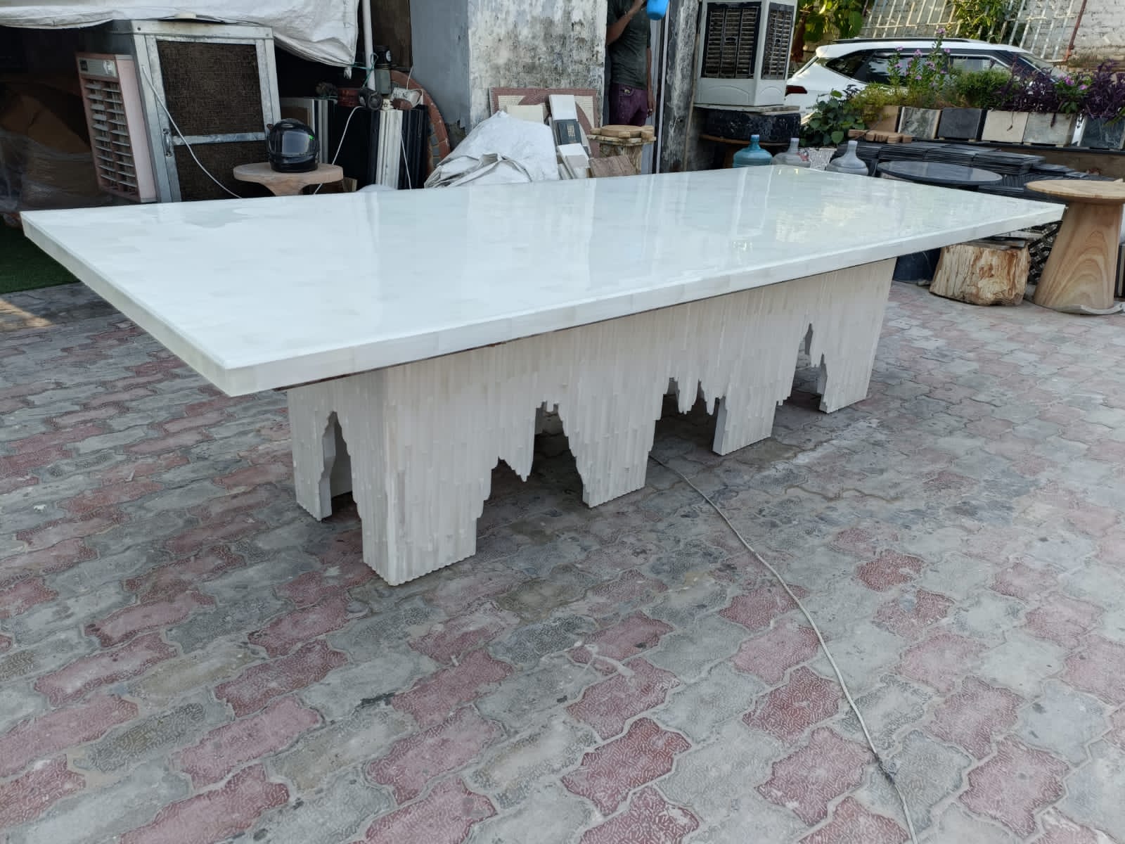 This is dining table made using gemstone selenite.
