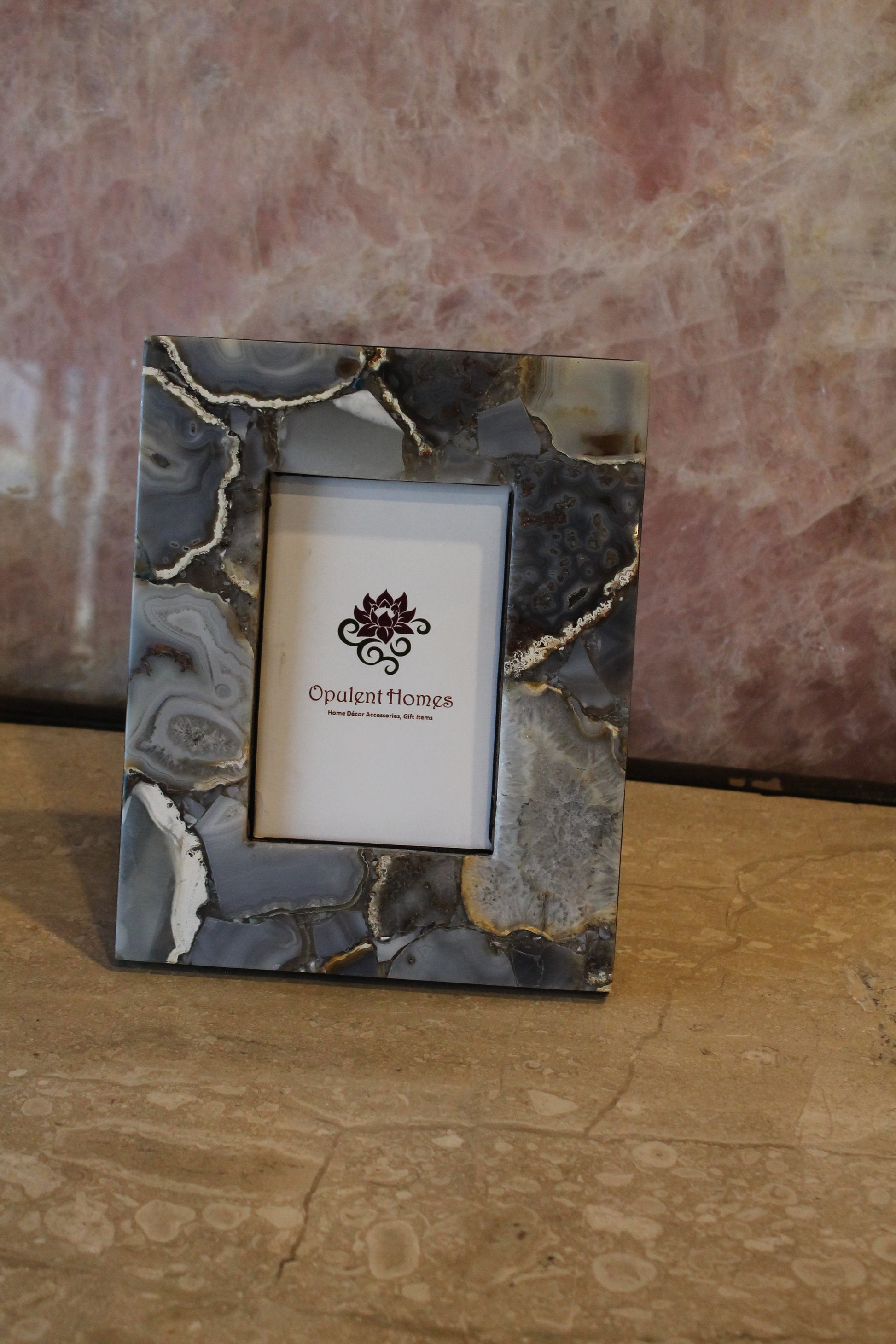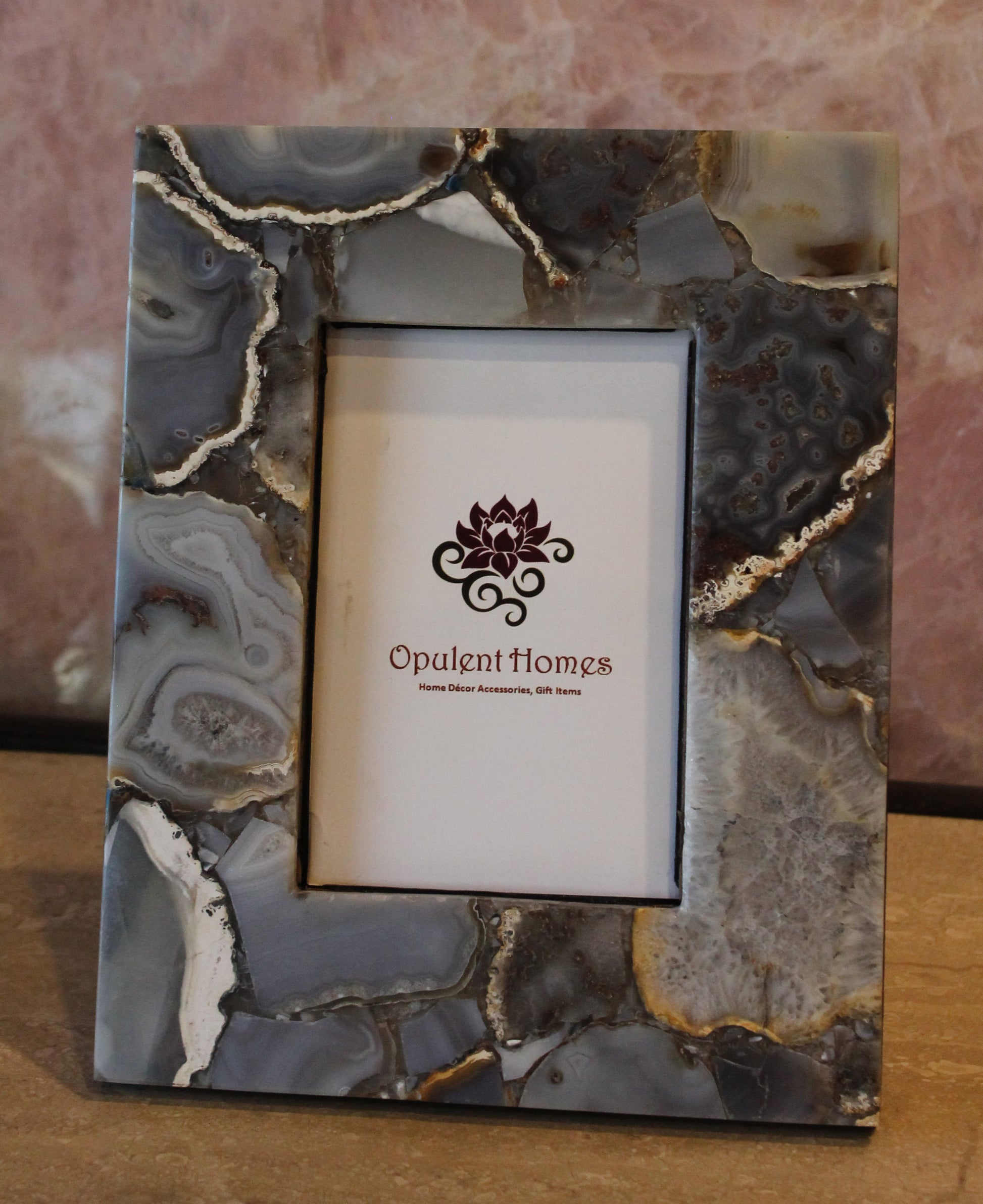 This photo frame made in grey agate. It is made to fit photo size 6x4 inches.