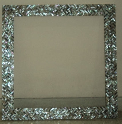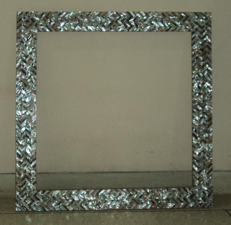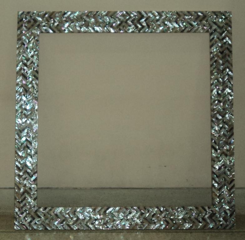 This is Mirror frame in herringbone design with green and white mother of pearl. The size is 3x3 feet.