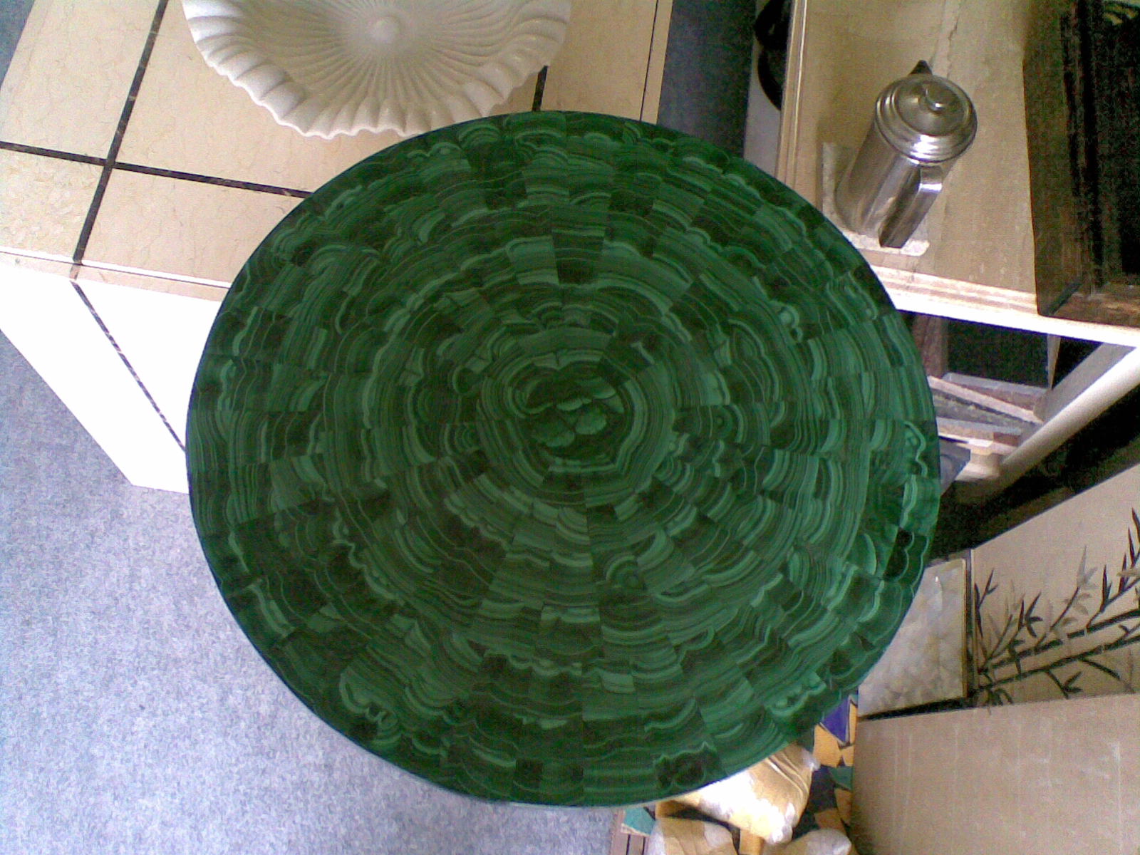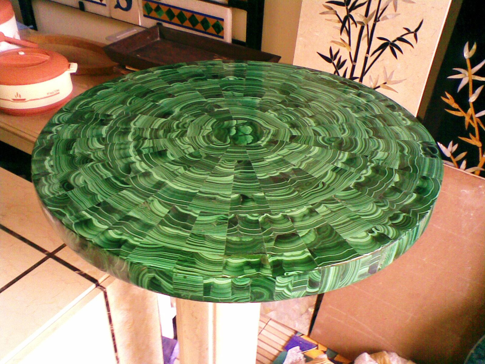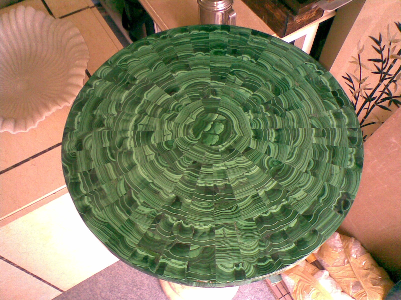 The Malachite is cut into pieces and then pasted in a pattern style.