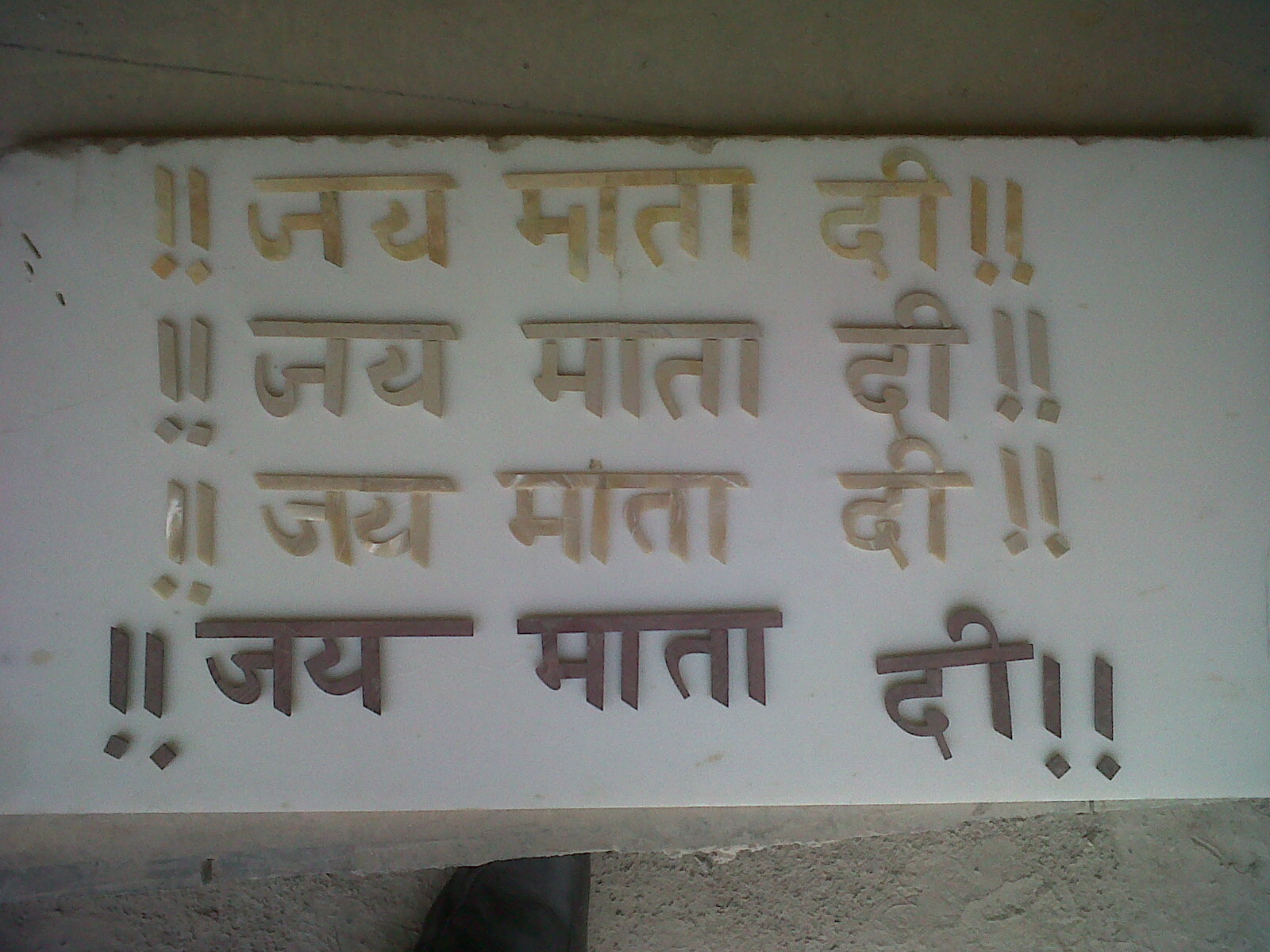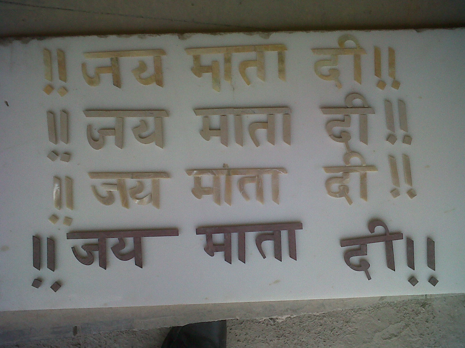 "Jai Mata Di" mantra inlaid on marble.