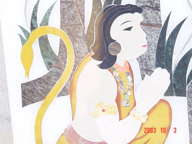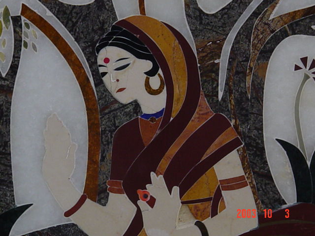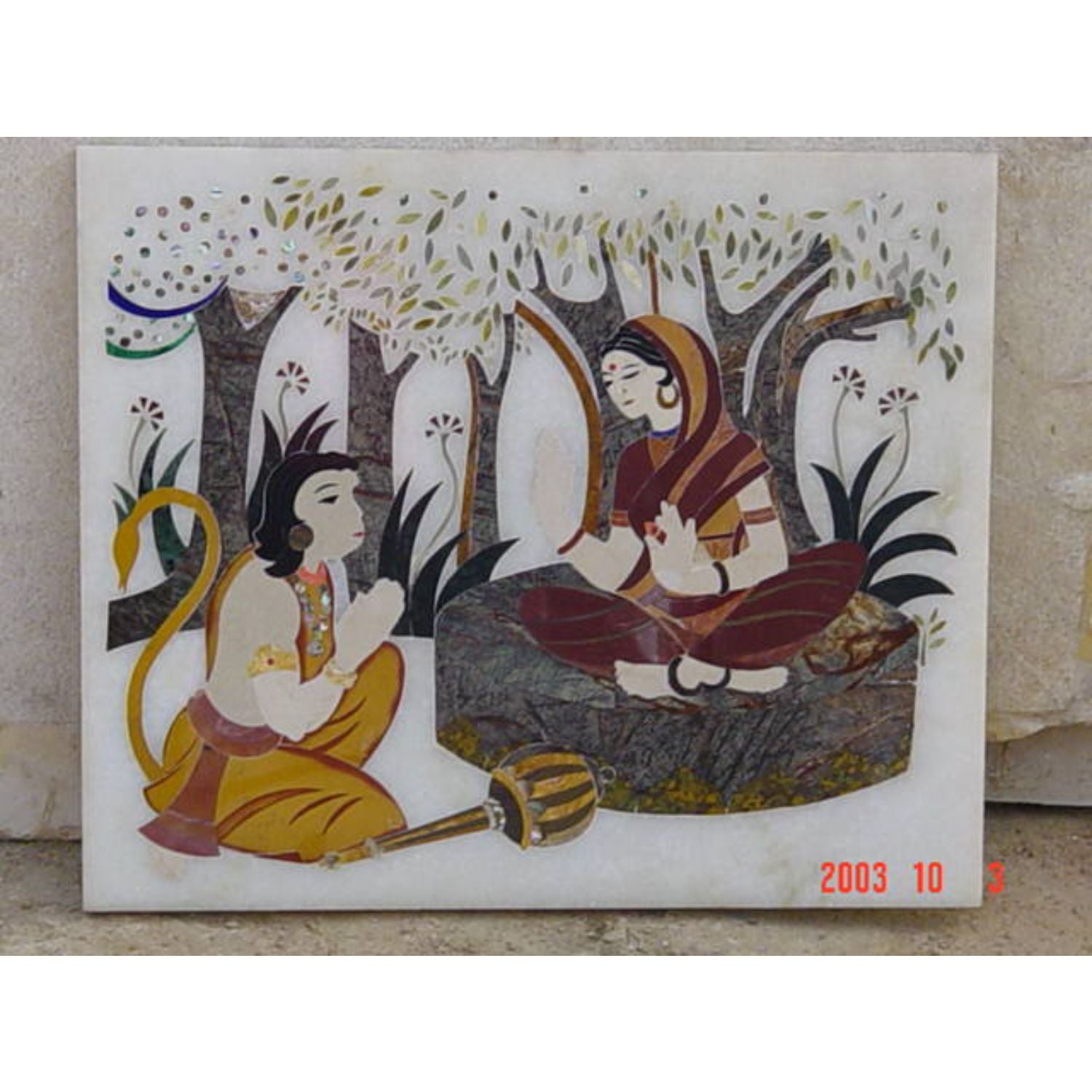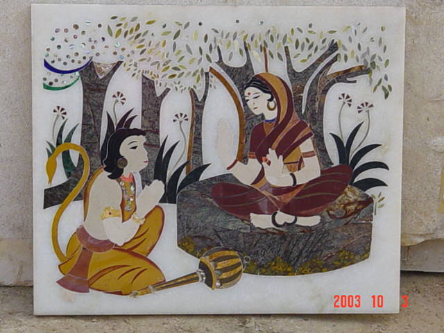 Depicting Sitaji's ring scene in marble inlay , can be used as a painting or one can insert on home mandir back or side wall.