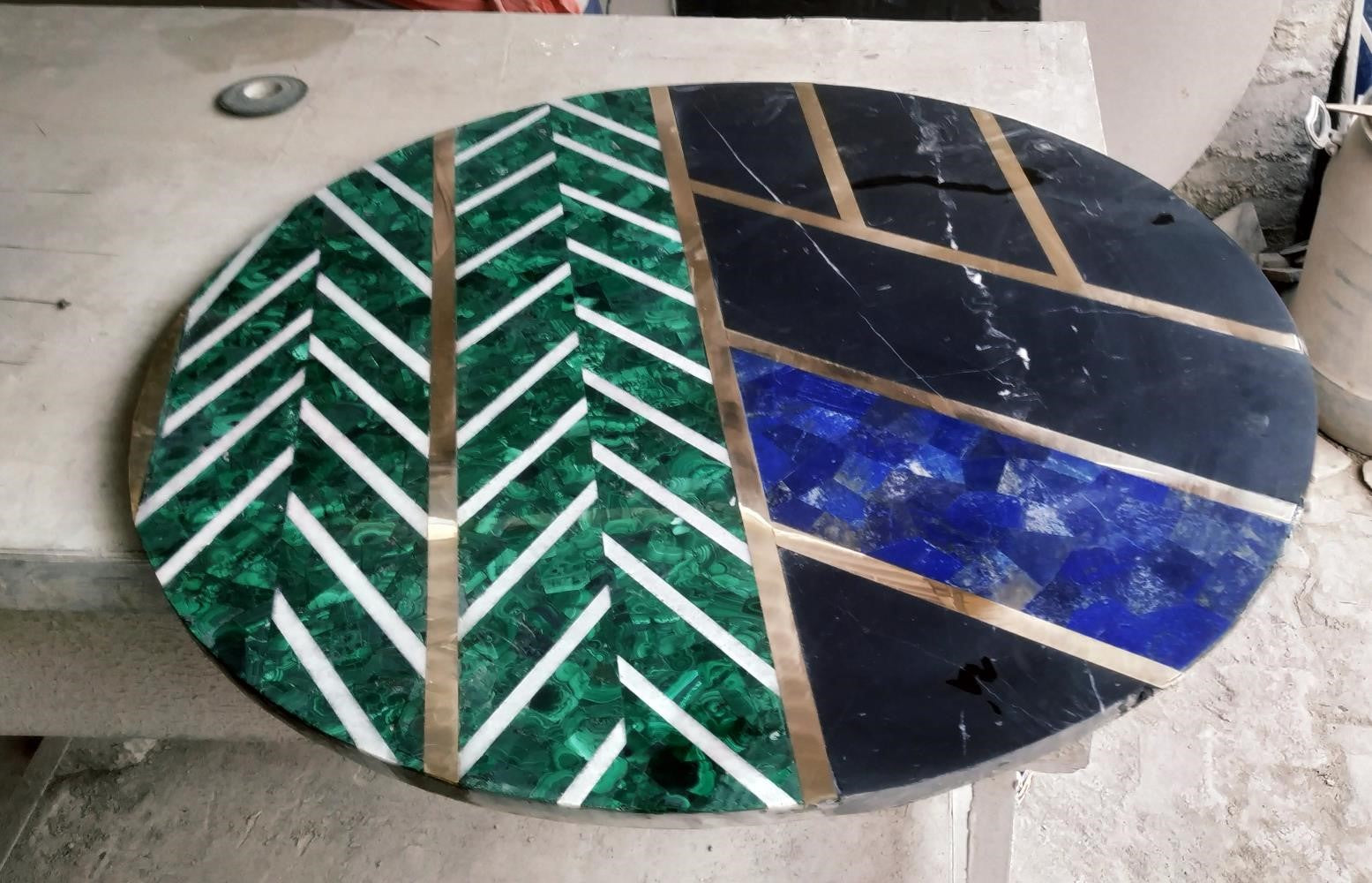 Stone Plus India Marble Overlay Tabletop in Lapiz, Malachite, Brass