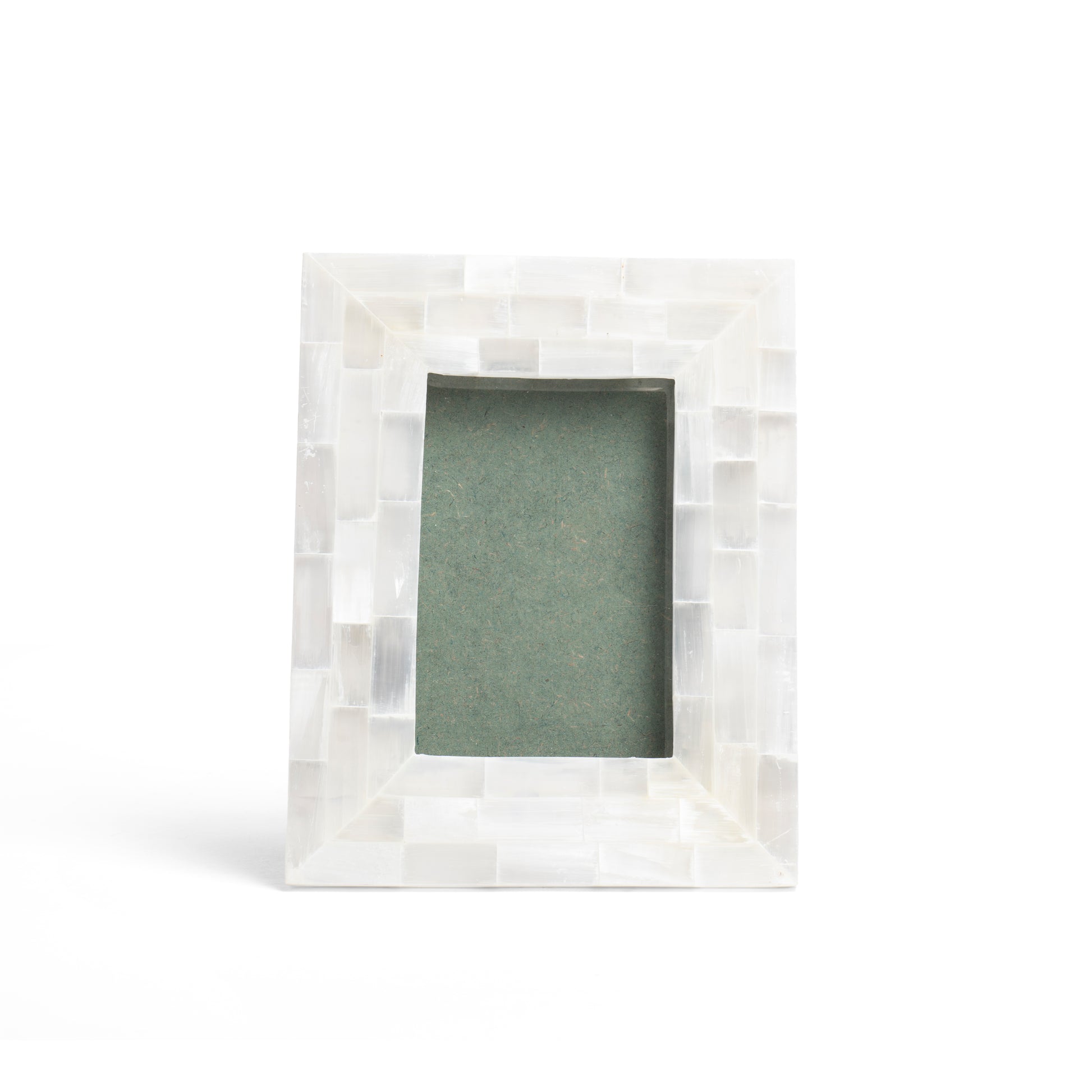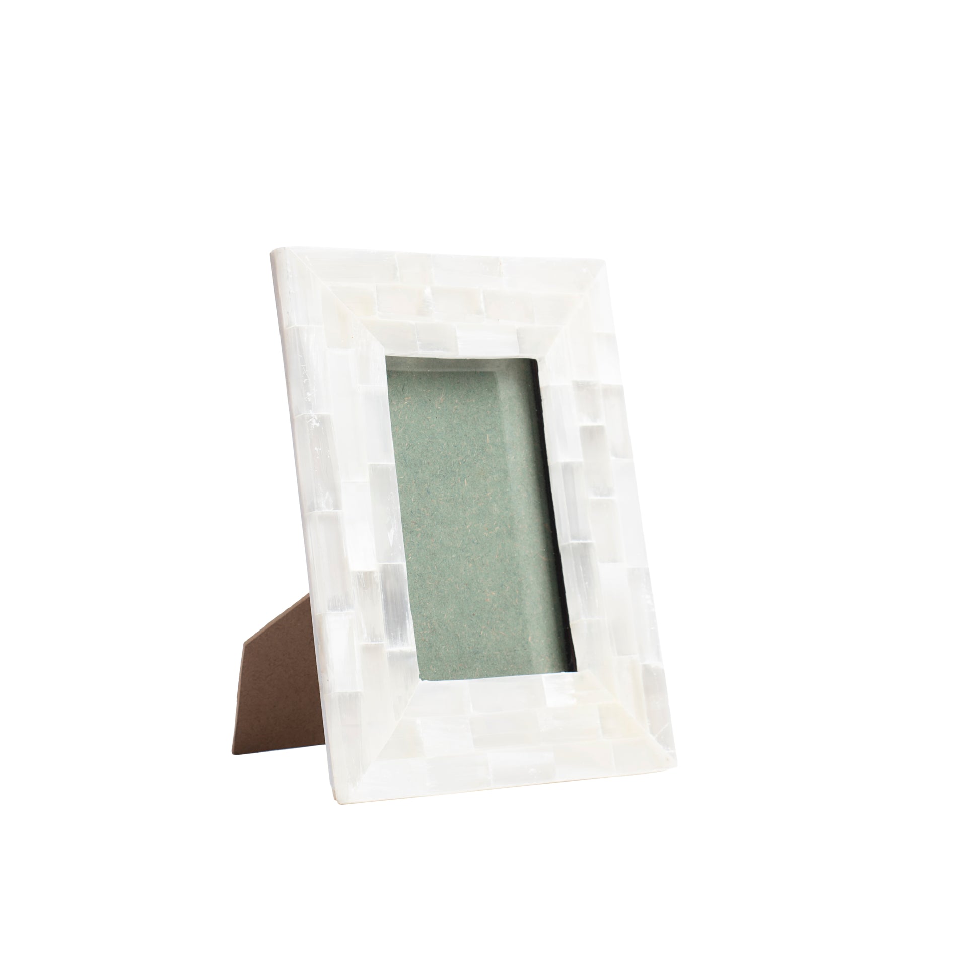 This photo frame made in selenite . It is made to fit photo size 6x4 inches.