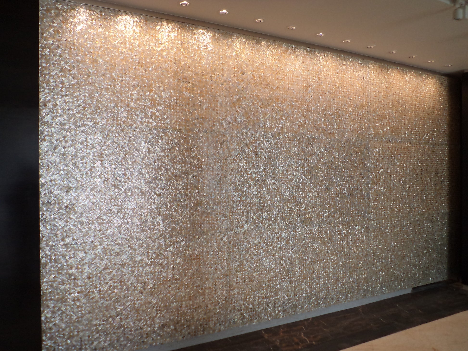 The wall of a hall was done with white mother of pearl, it looks beautiful highlighter.