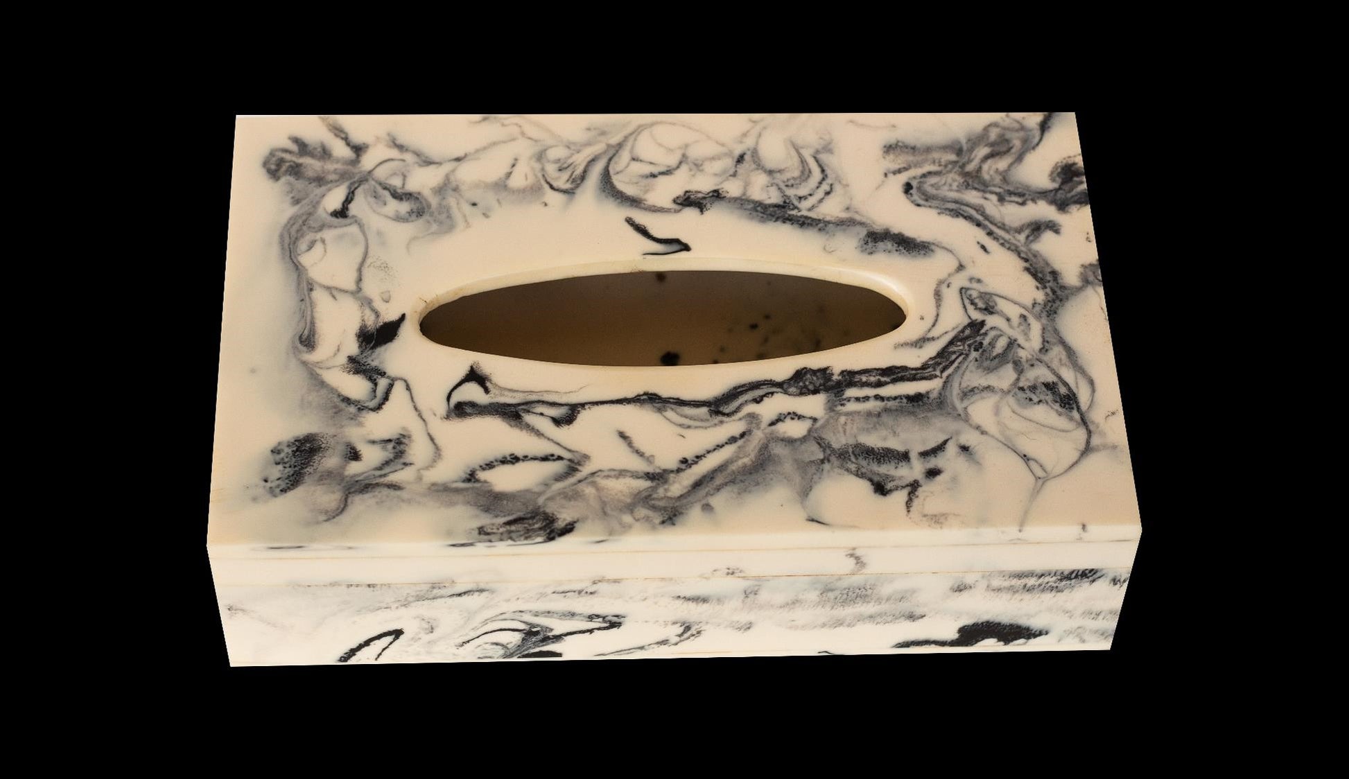 Opulent Homes Tissue Box Black White Resin 8x5x2