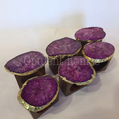 This is a set of 6 napkin rings , wood base. The purple agate has been fixed on each ring.